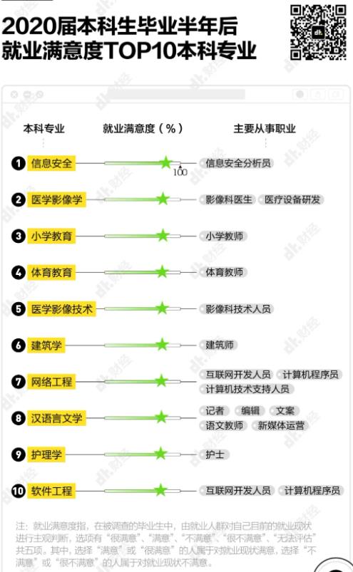 比如小學(xué)教育、漢語言文學(xué),都進入了本科生畢業(yè)半年后職業(yè)滿意度排行榜前10名,分別排在第3和第8。