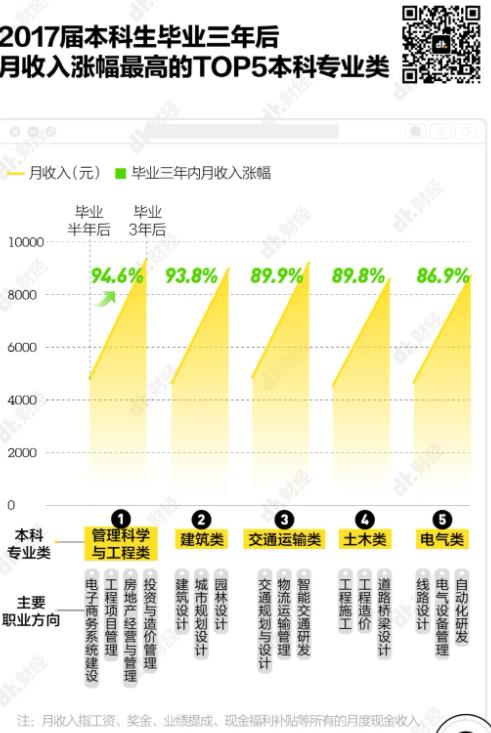 還有建筑、交通運輸、土木類專業(yè)等,它們雖然大多屬于傳統(tǒng)行業(yè),起薪低,普遍不如熱門的互聯(lián)網(wǎng)行業(yè)高,但好在收入增幅快、年終獎多。
